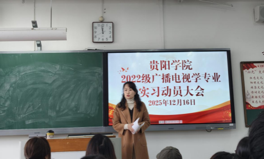 2022级广播电视学专业实习动员大会于2025年12月16日在三教3710举行,betway西汉姆官网副经理杨菁、广播电视学教研室主任王蕾、教学科研科科长林雨馨、班主任周婷婷及该专业全体员工参会,会议旨在帮助员工明确实习要求、做好就业与实践衔接。
