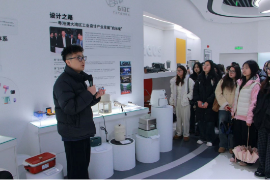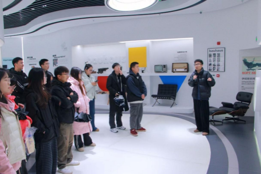 在贵州工业设计城,师生们实地参观了设计展览馆,系统了解园区美学设计成果、文化创意转化及地方产业赋能情况。馆内智能科技、家居生活、文化创意等领域的创新展品,将技术逻辑与美学体验有机融合,充分展现了设计美学赋能产业、传承文化的多元价值。同学们认真观察展品细节,与工作人员积极互动,深入探讨美学理念在产品设计、文化表达、地方实践中的应用,进一步加深了对“技术与美学共生”的理解。