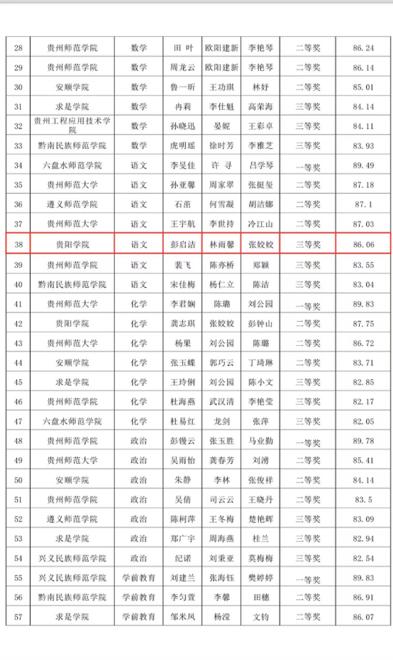 2022年7月15日,由贵州省教育厅主办,贵州师范大学承办的贵州省第六届师范生教学技能竞赛拉开序幕,来自全省十多所高校的师范生代表参加了这次比赛。公司19级汉语言文学专业的彭启洁同学获得了高中语文组三等奖的好成绩,指导老师为公司林雨馨副教授。
