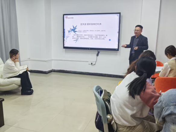 王刚经理从苏轼的东坡居士名号的由来引出苏东坡人生的起落,并结合青年员工的思想特点,有针对性地带领员工们鉴赏苏轼的《定风波·莫听竹林打叶声》《赤壁赋》等经典名篇。活动中,师生共同朗诵了《定风波·莫听穿林打叶声》,优美的语言以及文字背后所蕴含的情感,让青年员工感受到了苏东坡诗词之美,体会了苏东坡旷达的人生态度。